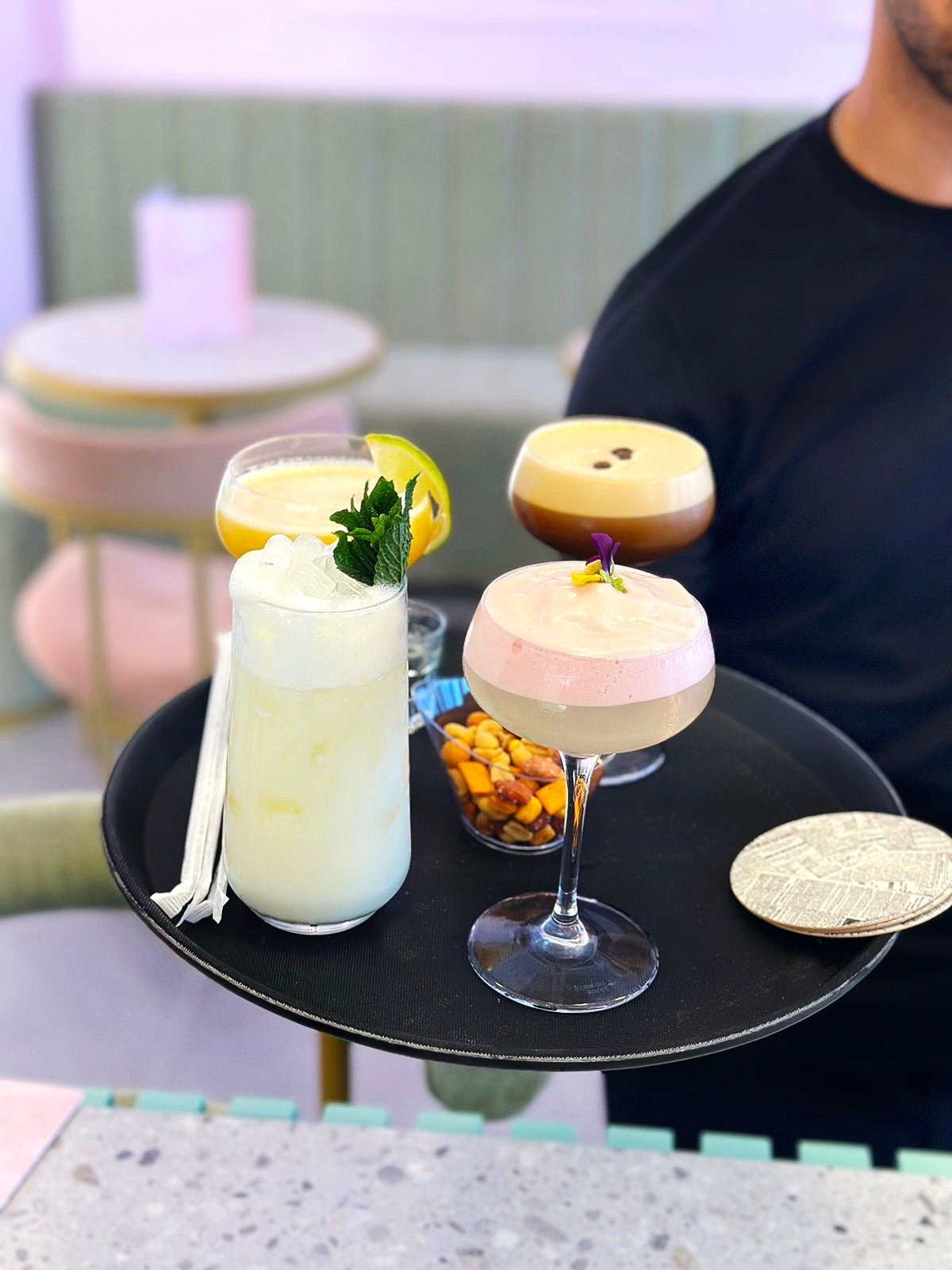 Our bar menu features a selection of top notch cocktails, beers, spirits and fine wines. Each beverage is expertly crafted using premium ingredients with attention to detail. Whether you prefer timeless cocktails or want to explore flavors our skilled barman team are ready to amaze you. Be sure not to miss our “Cocktail Bags,” a way to enjoy your favorite drinks on the go.